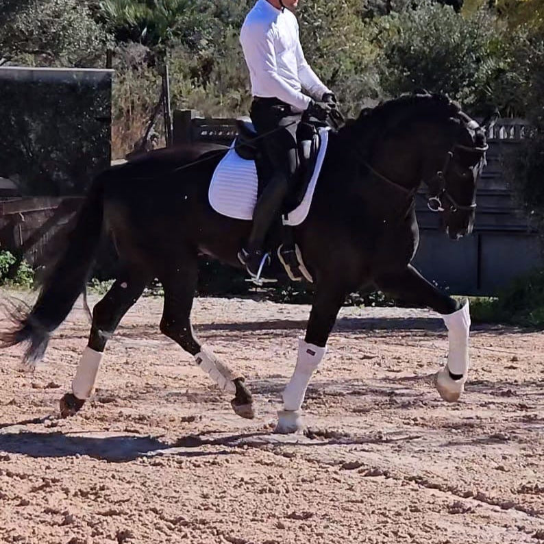 Level: PSG + piaffe and passage. Suitable for all the family, he can also develop with dressage programm.