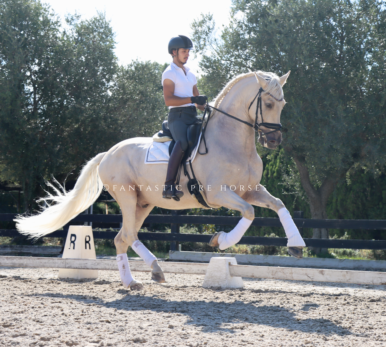 Lovely perlino with excellent movements for dressage and working equitation for his lovely baroque and short back, great neck uphill.