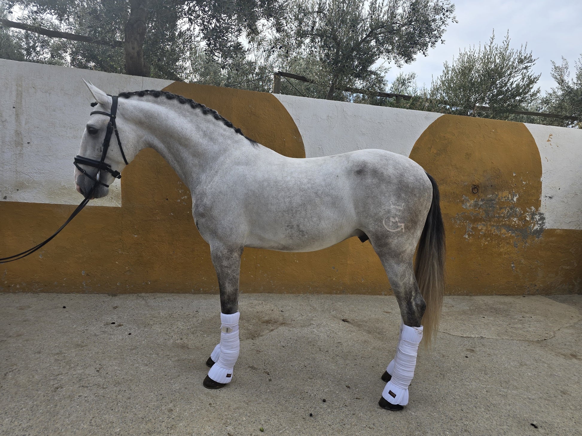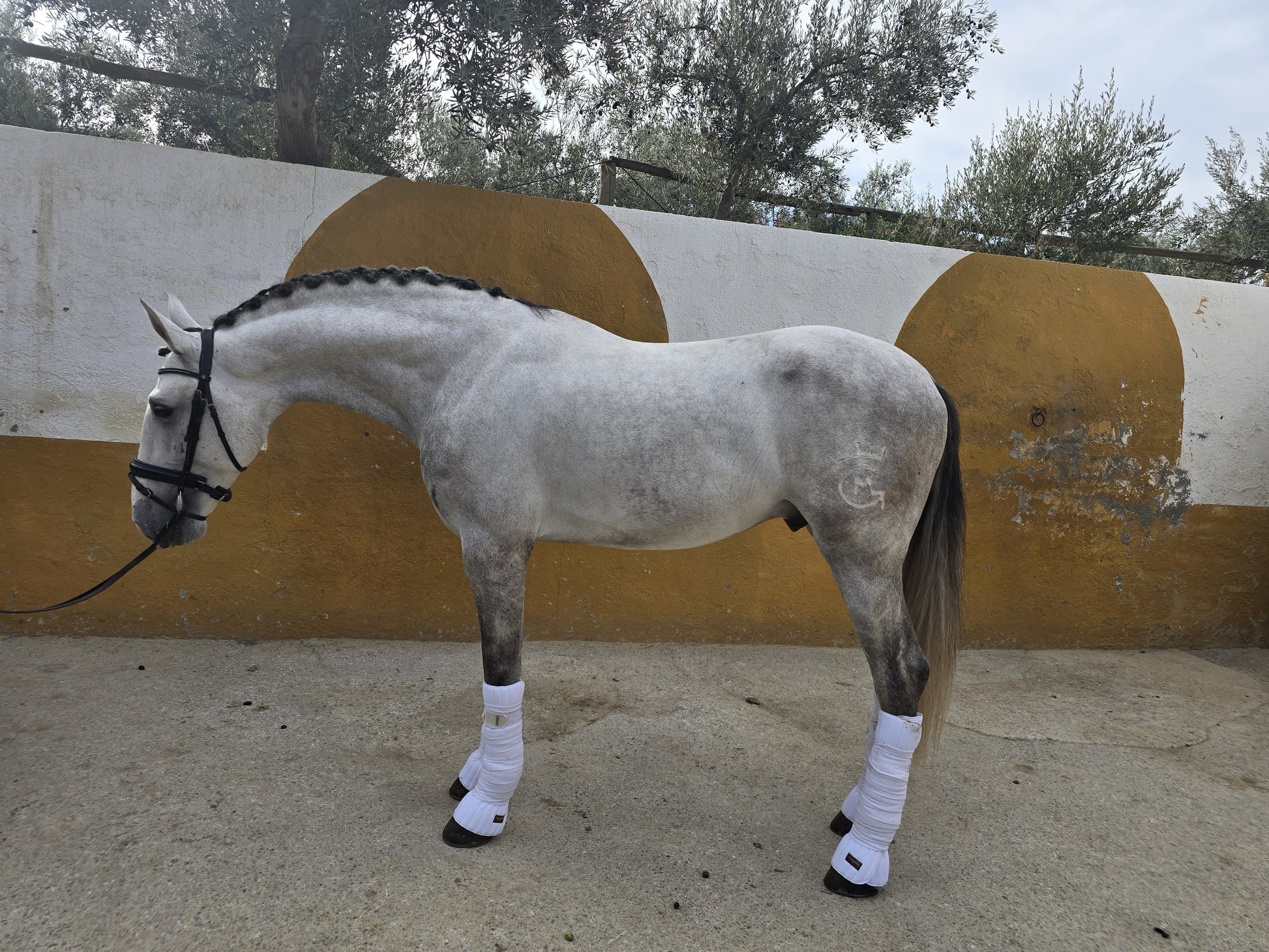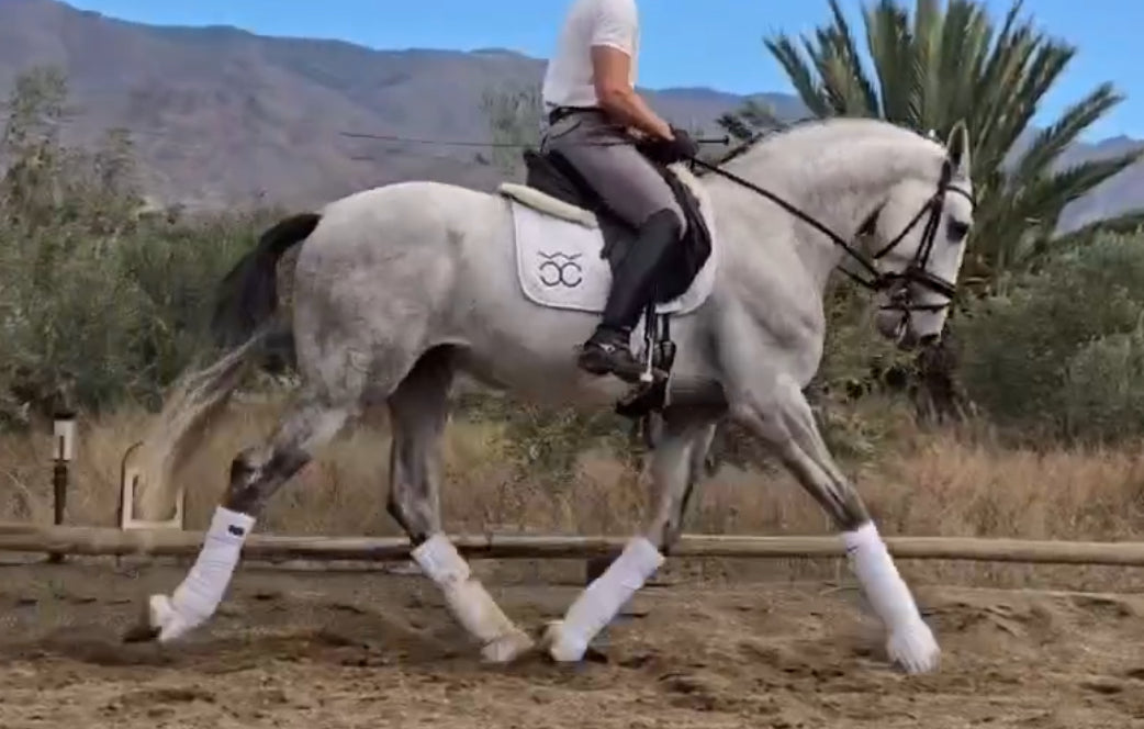 Level: Basic level ridden and developing with professional rider, has excellent behavior handleling and under saddle too even is a young horse he answer really good to the rider aids and is safe, he will not spook for the aid leg, easy to ride. Being lunged for warm up.