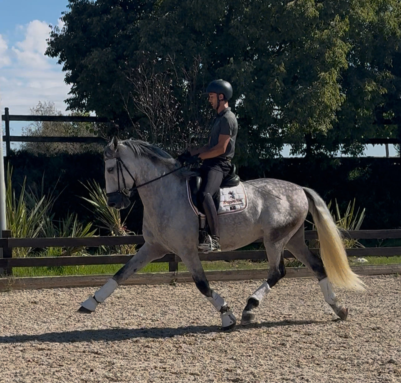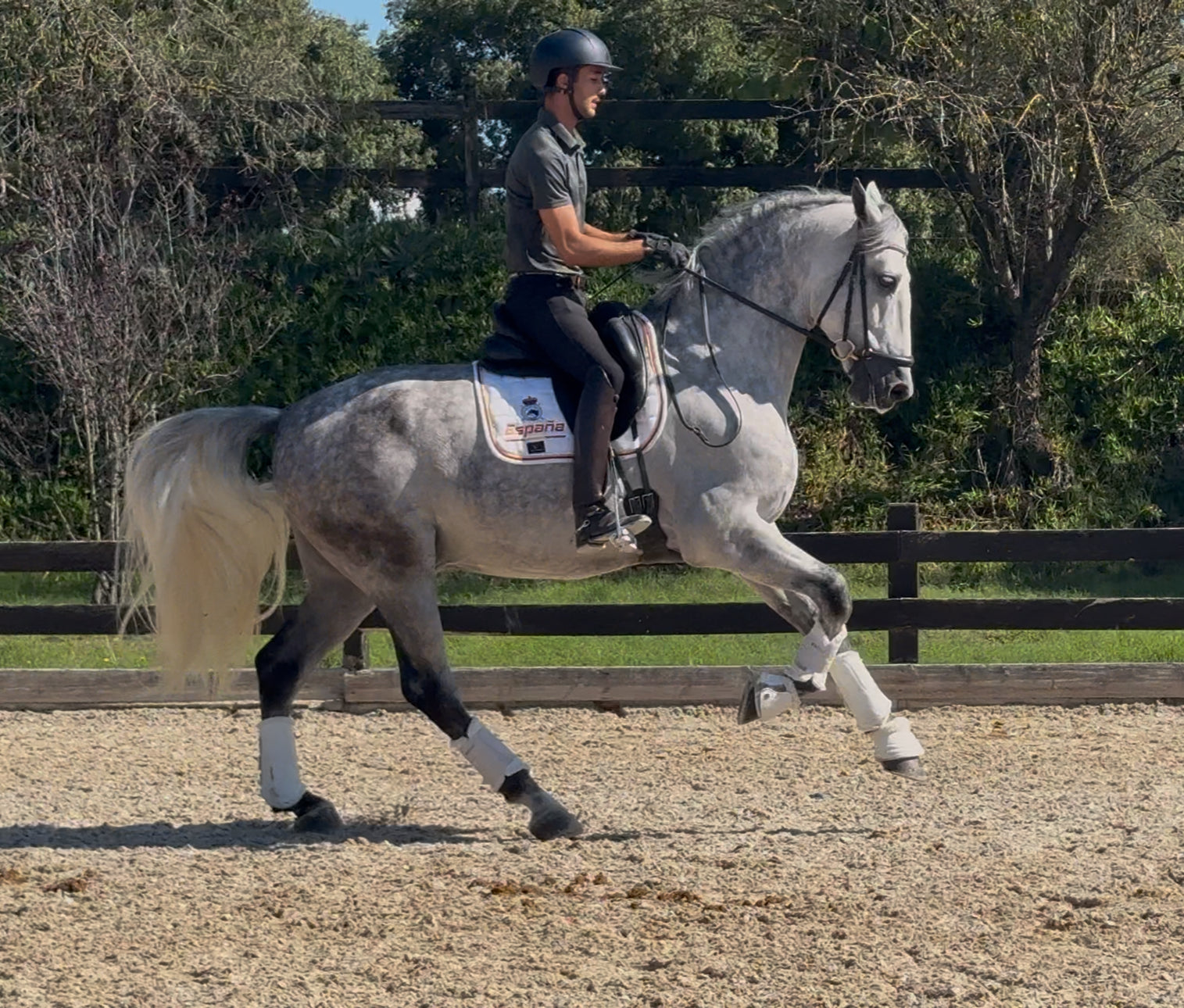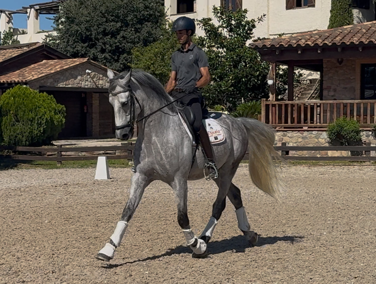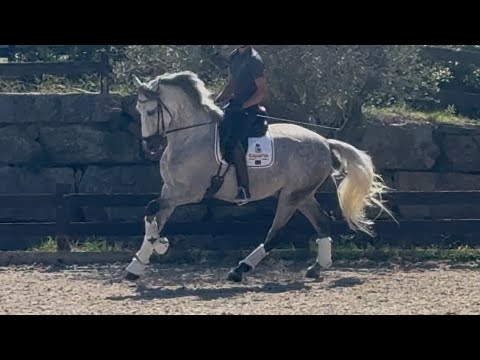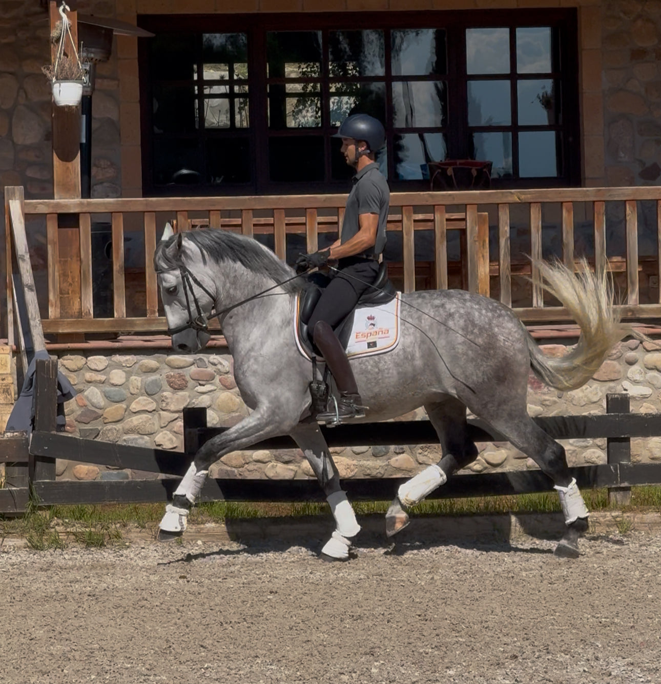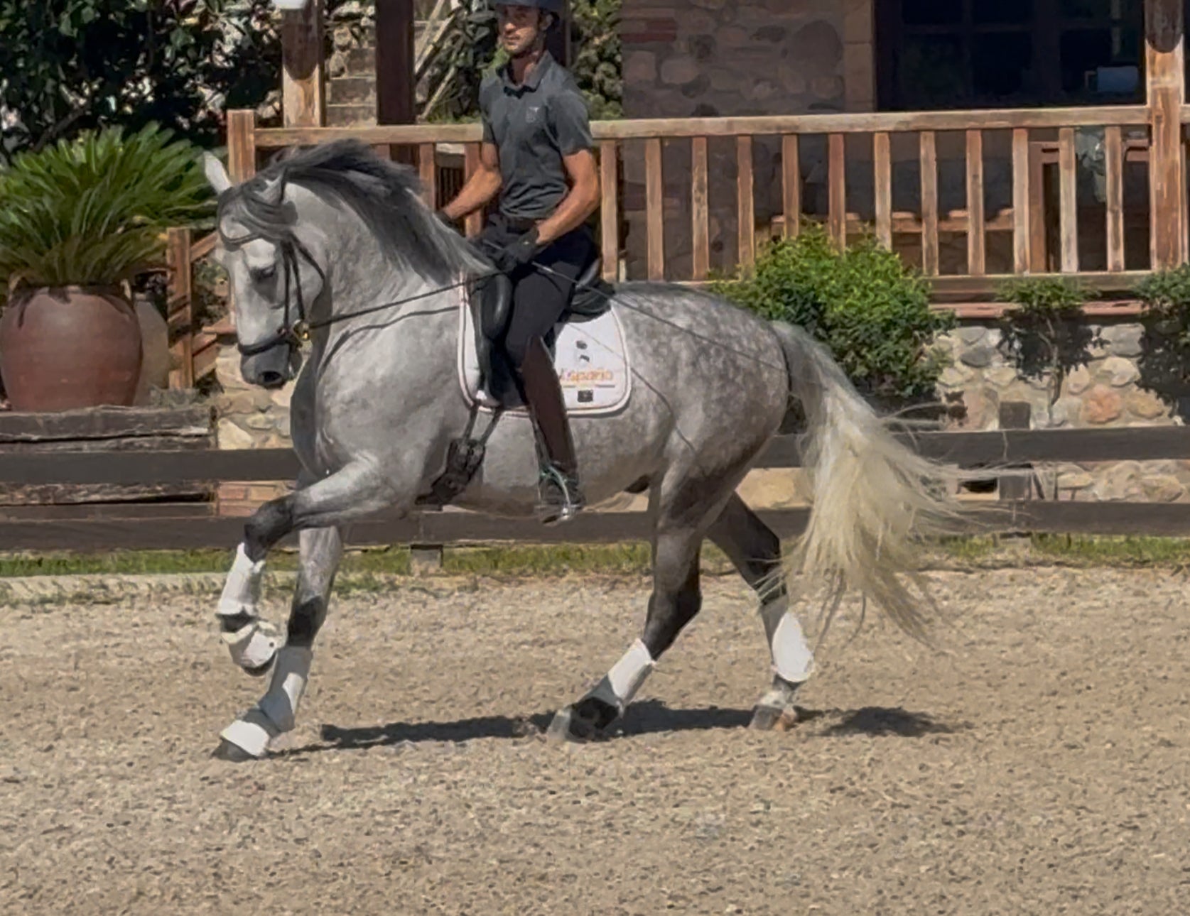 Level: according to his age and developing to be solid at 3rd level with changes both sides. In the video can see how he is doing. Has excellent behavior and is perfect for dressage competitions. Has experience competing and getting gold medals at his category, traveling whole Spain and behaving excellent.