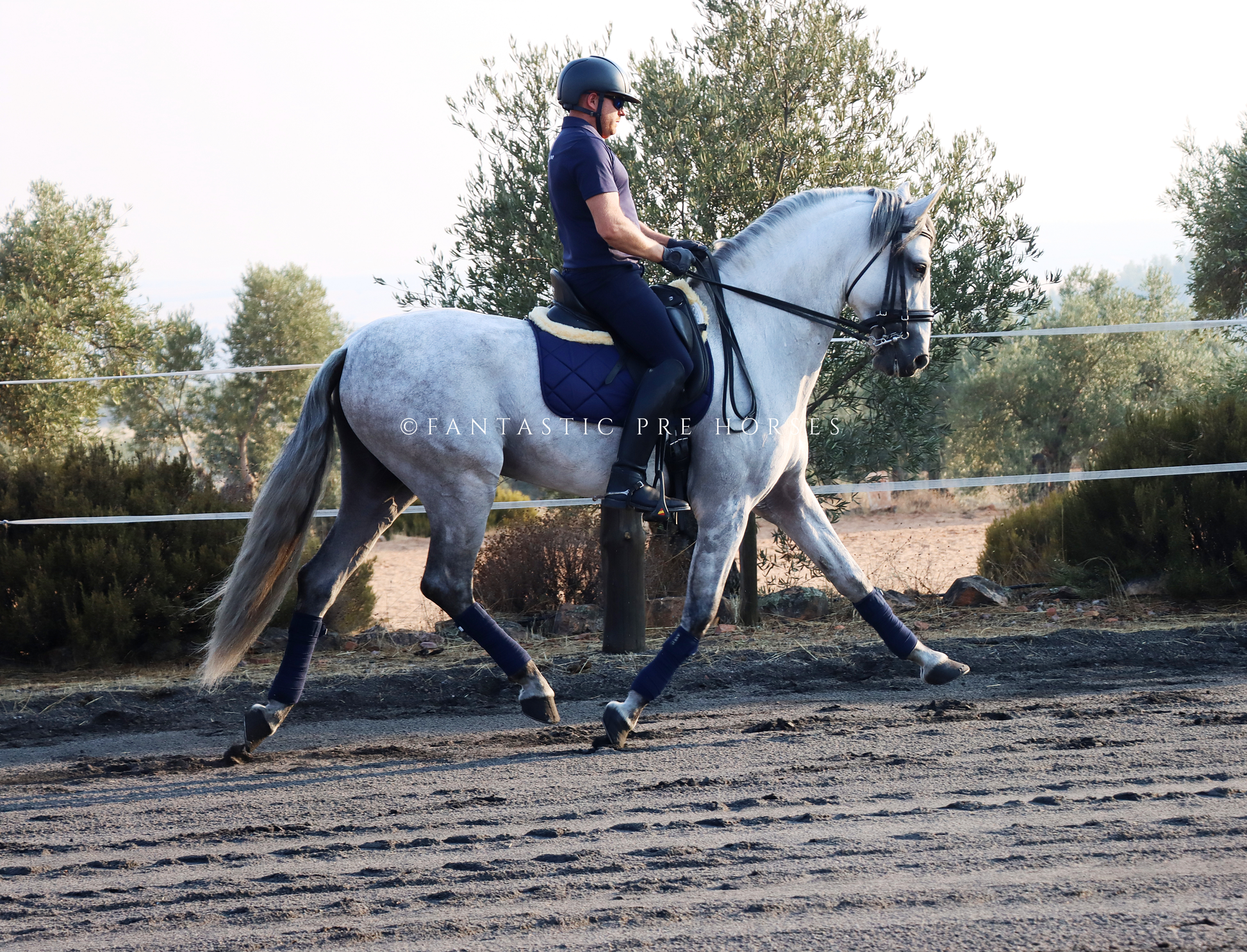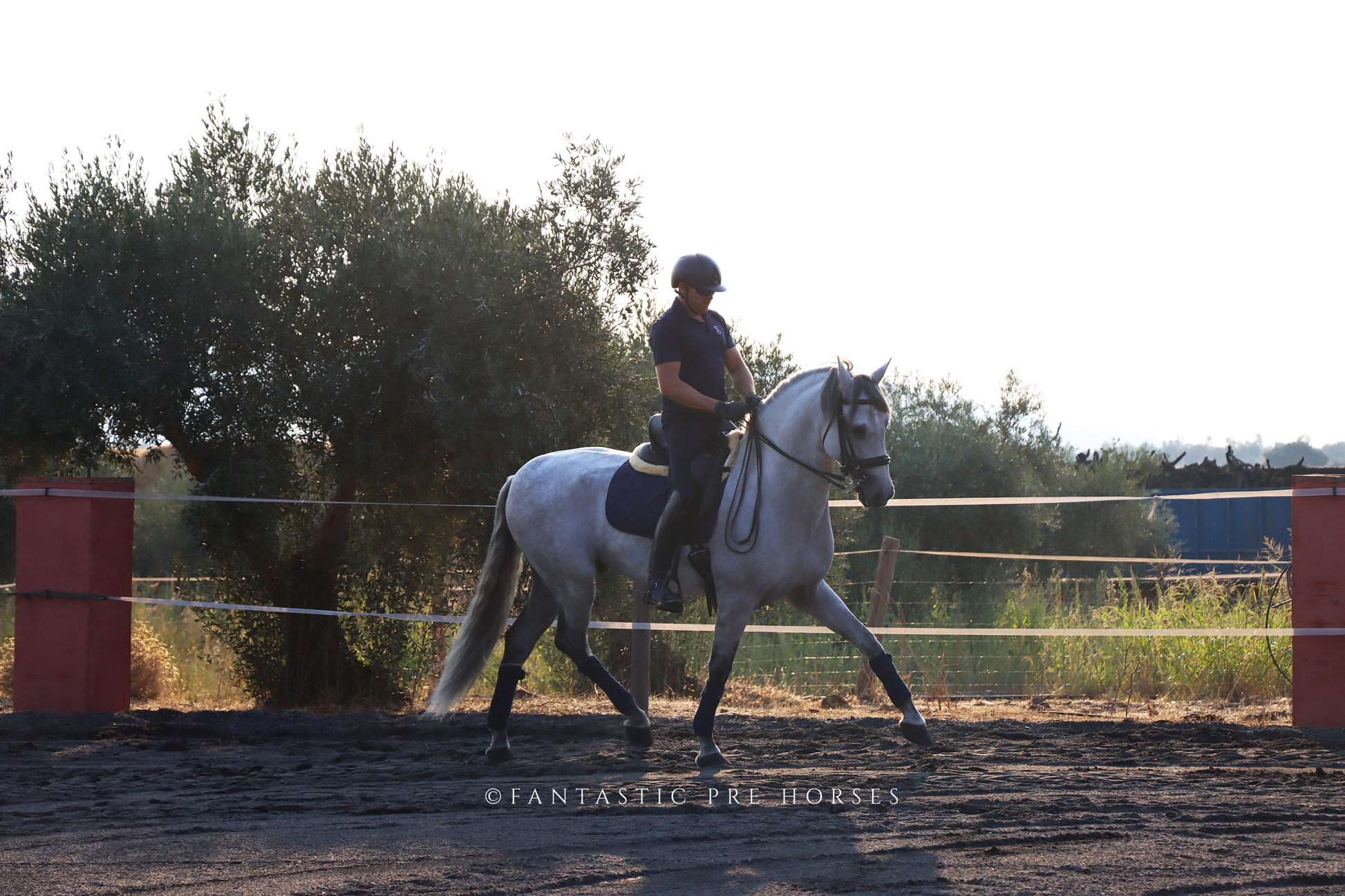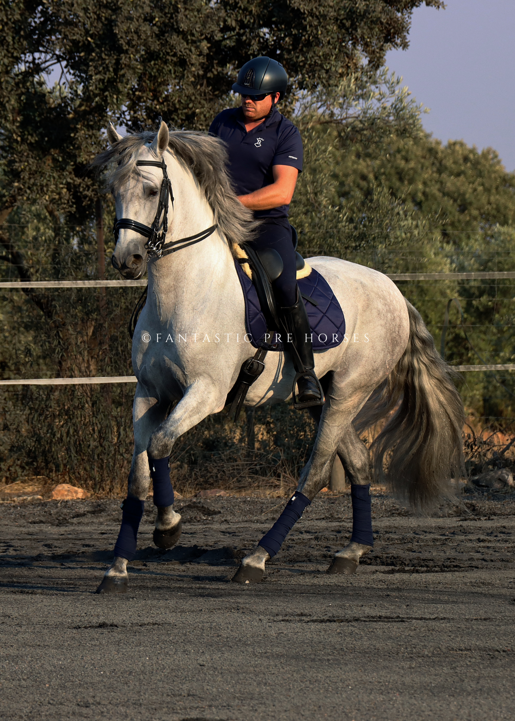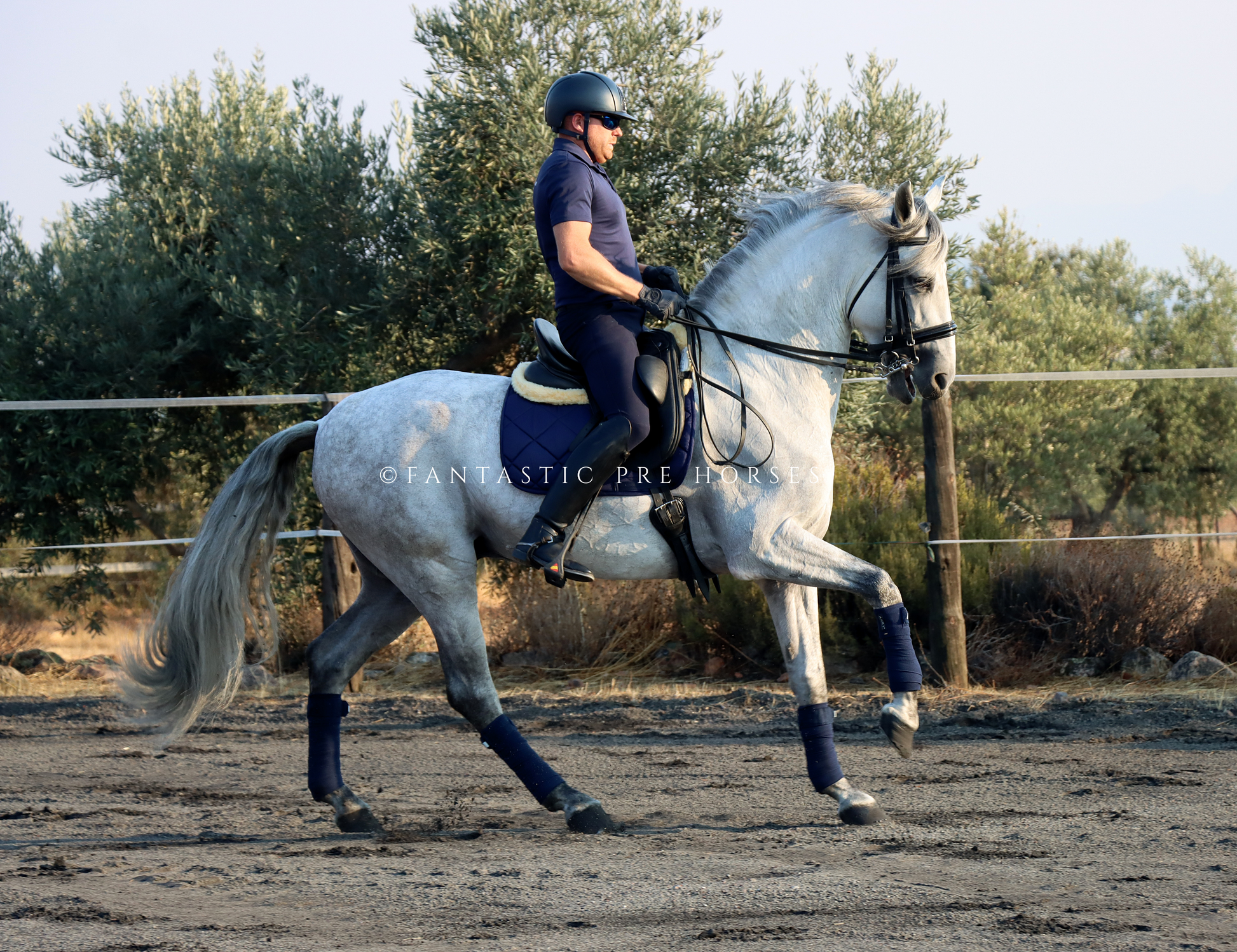 Ibi is an incredible great mover with elasticity and great balance. He is very technical horse and he is incredible easy to understand. He is schooling exercises according his age. Schooling tempis no confirmed yet.