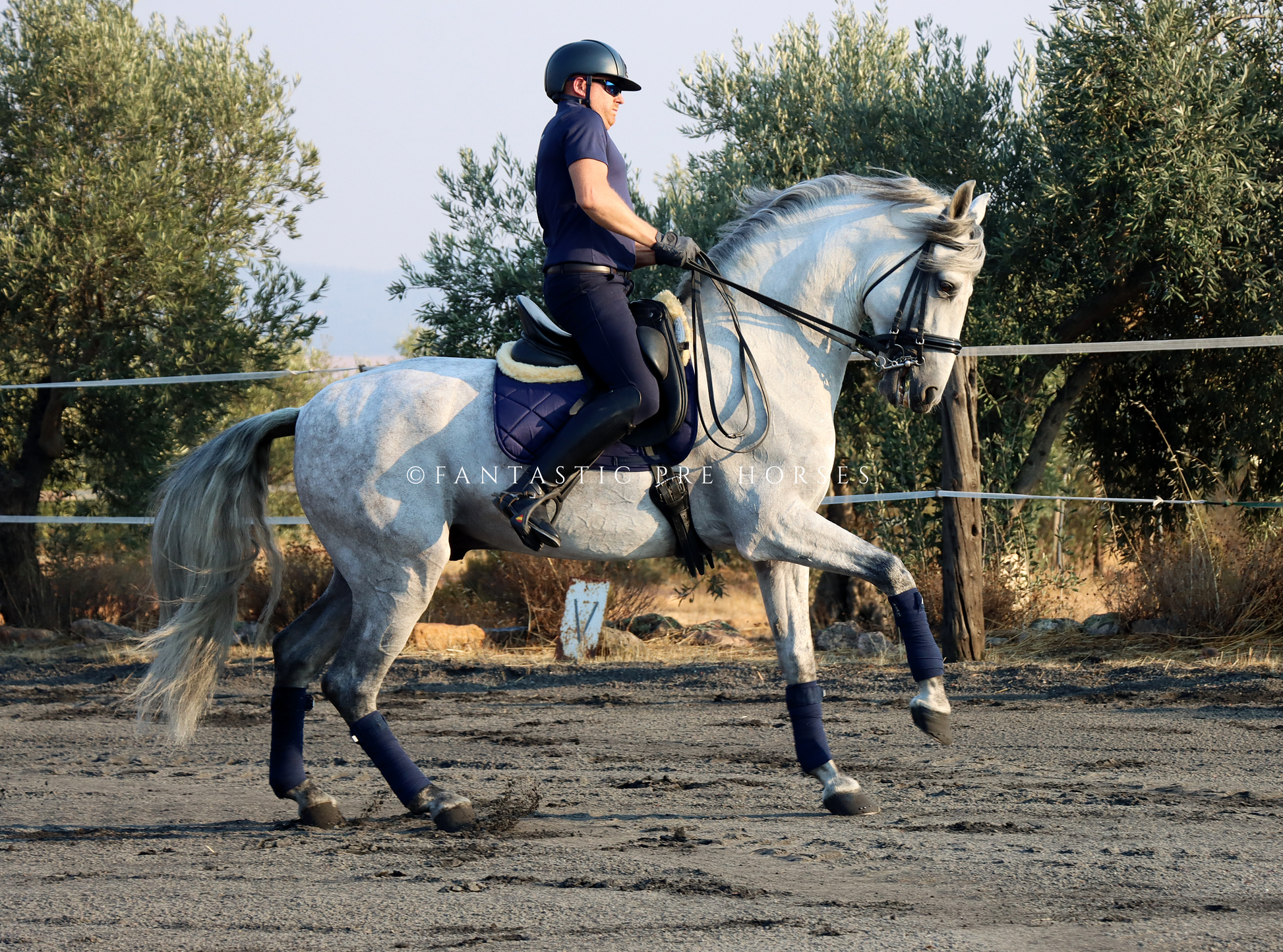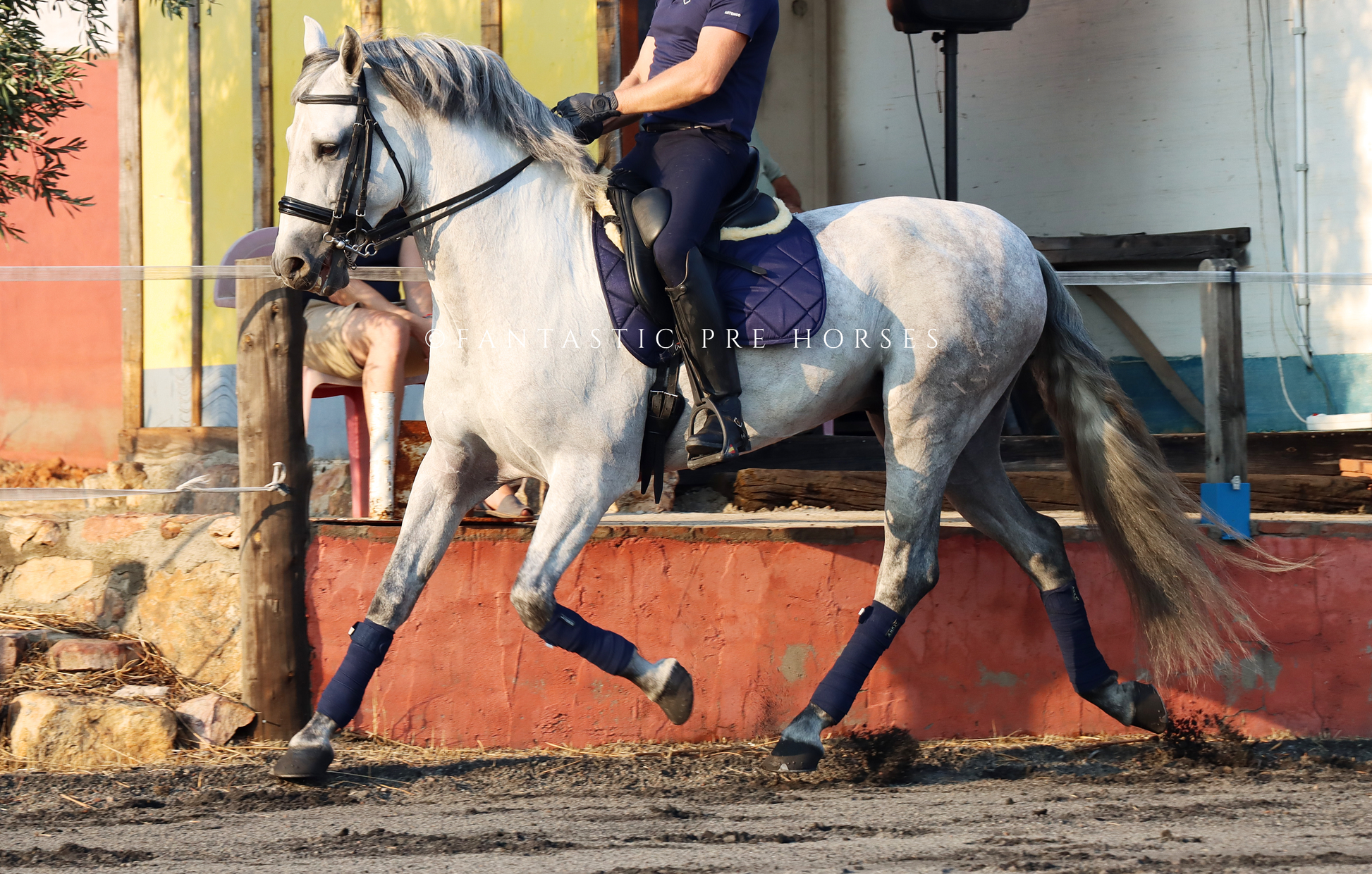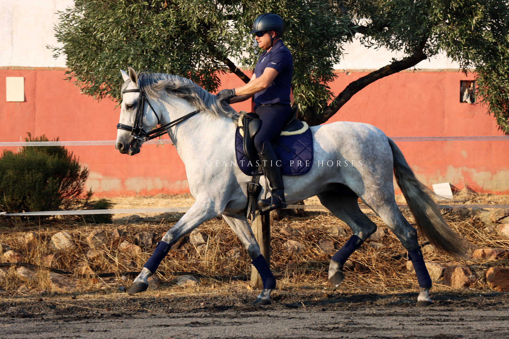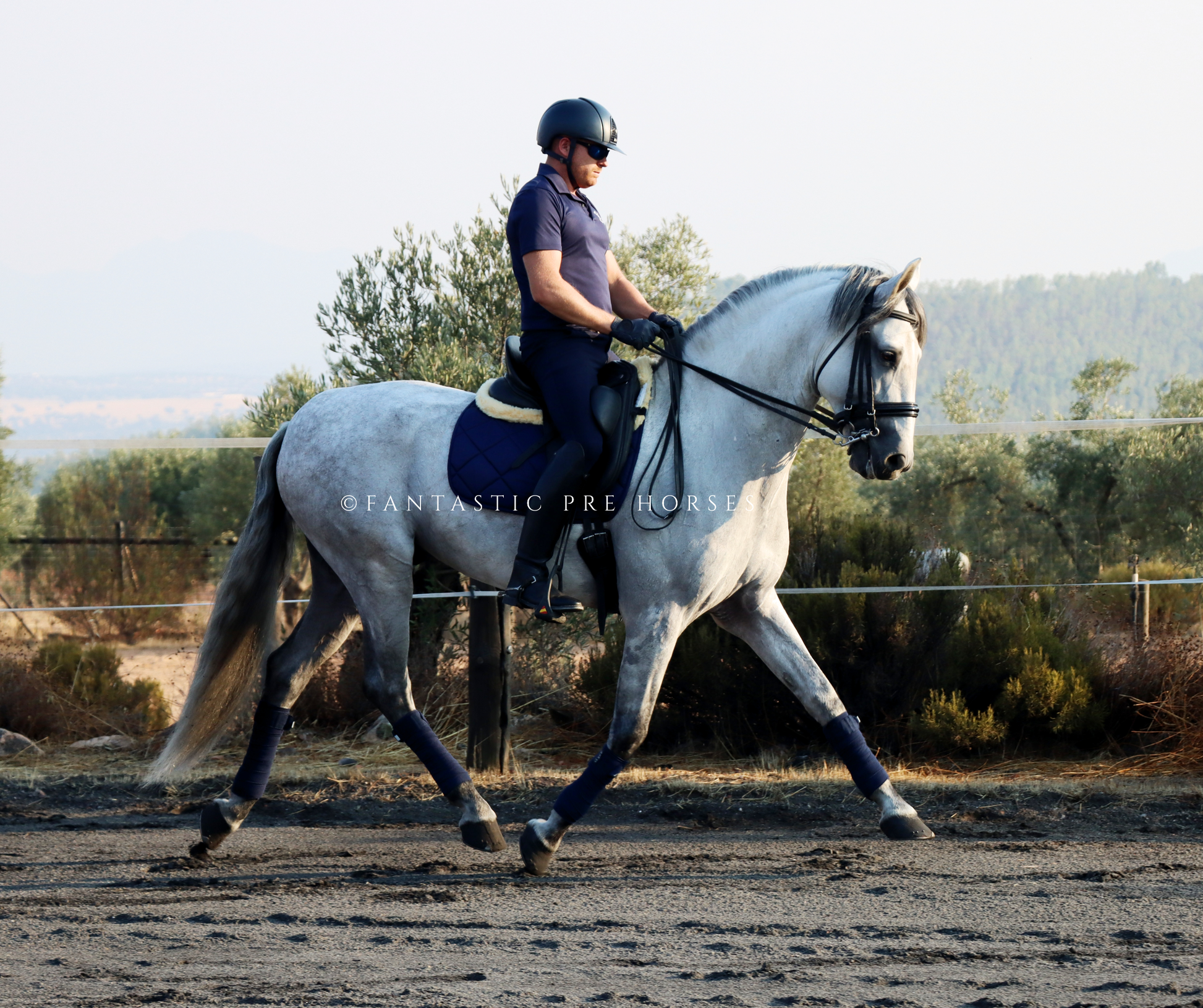 Ibi is an incredible great mover with elasticity and great balance. He is very technical horse and he is incredible easy to understand. He is schooling exercises according his age. Schooling tempis no confirmed yet.