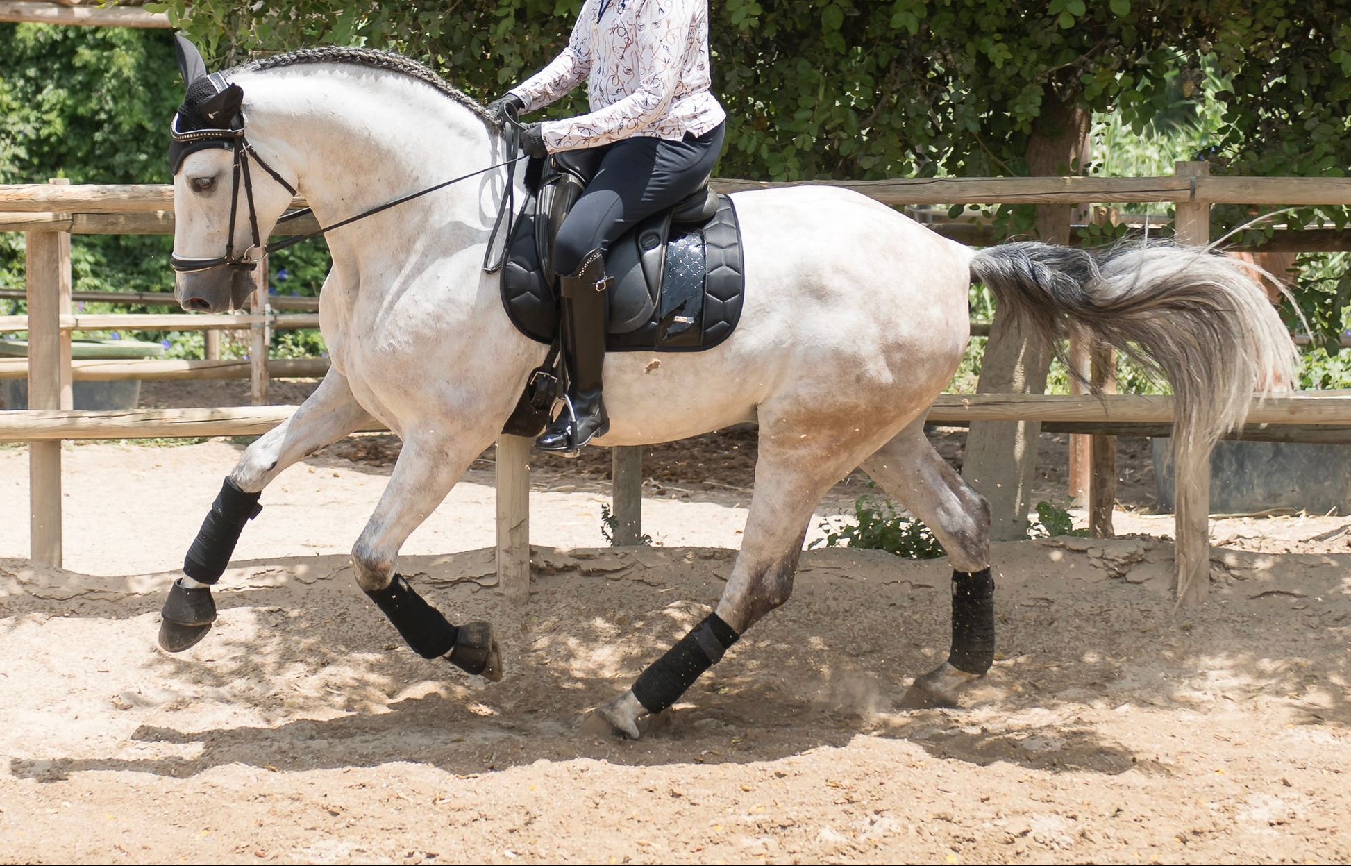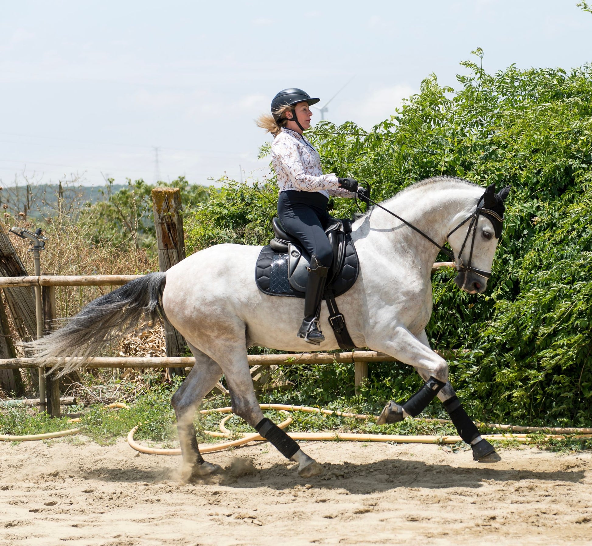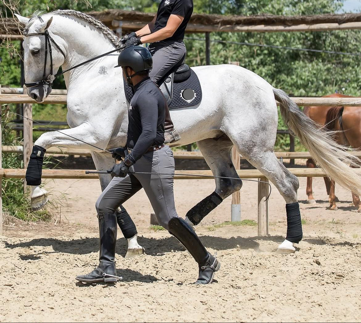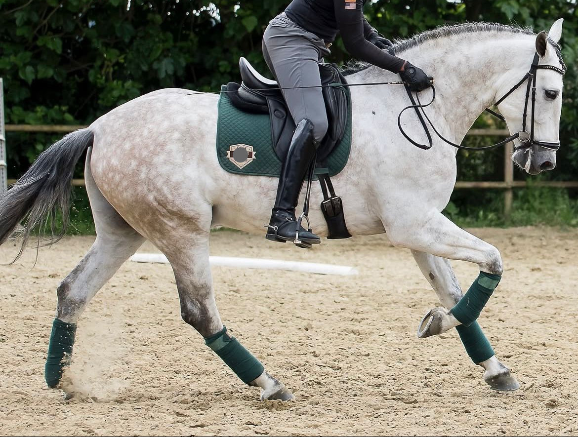 Level: Schooling third level with changes, develop them, piaffe and passage, canter pirouettes. Developing all in professional yard.